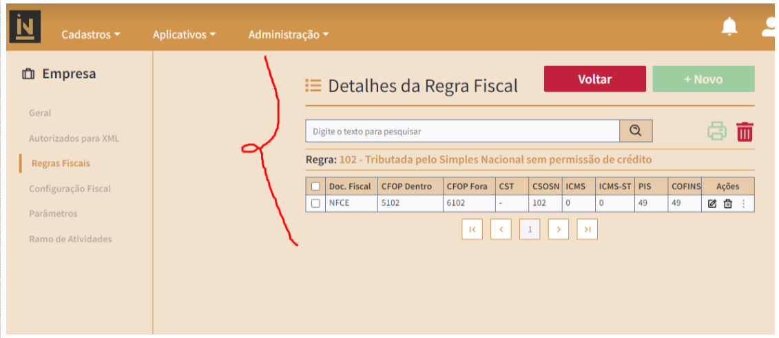 * Administração > Empresa > Regras Fiscais Imagem 1.