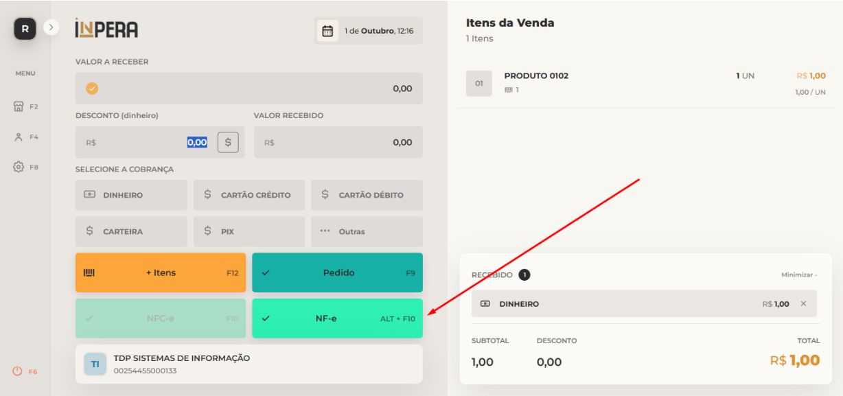 O objetivo desta OS foi disponibilizar um recurso que permita a emissão de NF-e pelo INPERA PDV.
