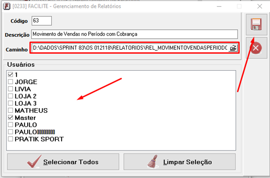 seguida, localize o arquivo .sql Dentro da pasta relatórios, selecione os usuários