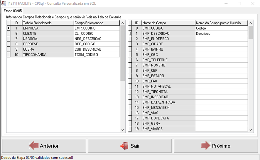 tabela e preenche-lo, clicar na primeira tabela e clicar em ‘próximo’: