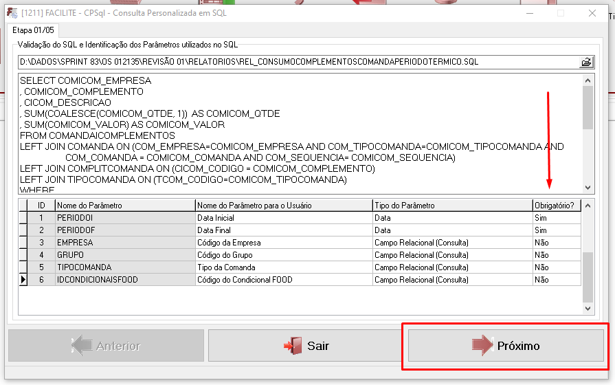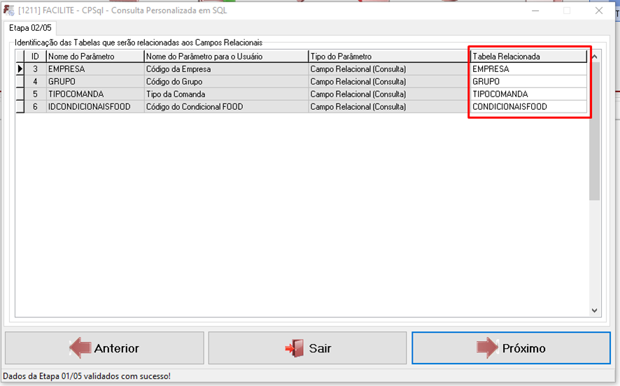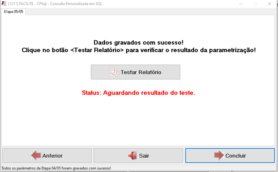 Clique em ‘Próximo’ na Etapa 4 para salvar as parametrizações E na etapa 5, clique em testar relatório.