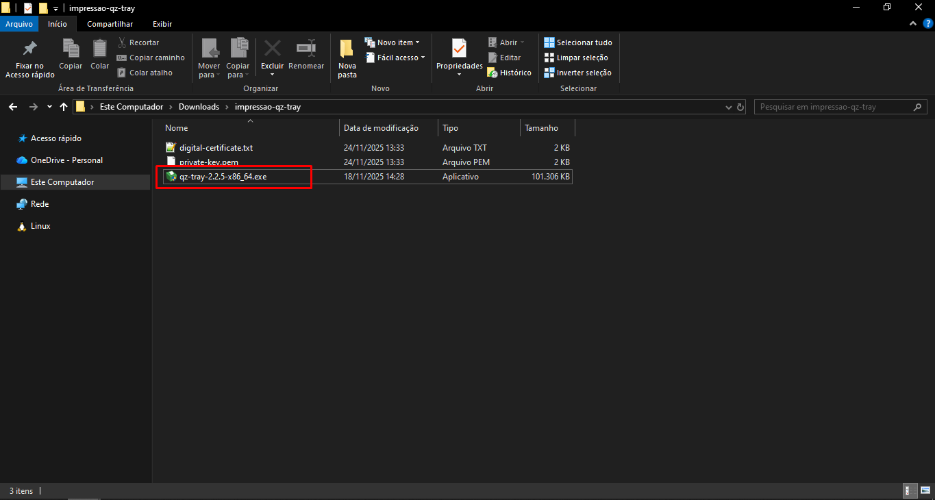 2. Extraia a pasta compactada e execute o instalador "qz-tray-2.2.5-x86_64.exe".