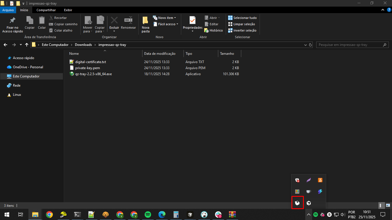 5.2) Ao finalizar, será criada uma pasta na Área de Trabalho chamada "QZ Tray Demo Cert".