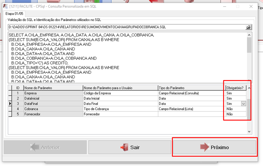 Desenvolvimento de Relatório – Resumo do Movimento de Caixa Agrupado por Cobrança NT Nº 0529/2025