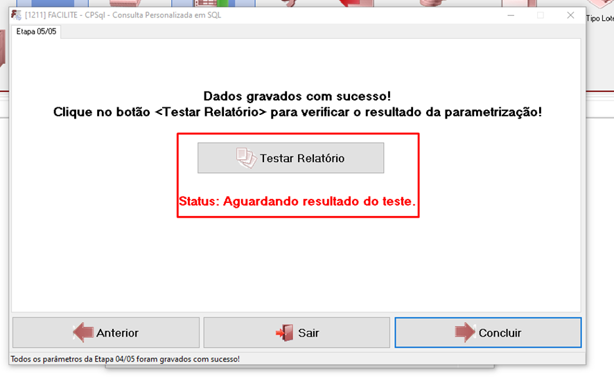 Na tela sequente, aparecerá um botão para Testar Relatório, é essencial fazer o teste, para garantir que está configurado como esperado.