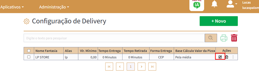 2. Clicar no ícone de Editar (lápis) para alterar as configurações. Conforme