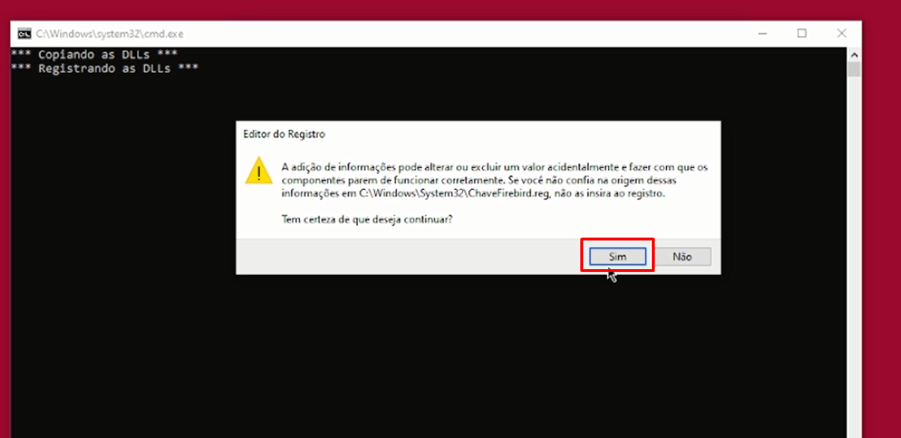 registro, confirme todas as solicitações clicando em Sim. (Conforme